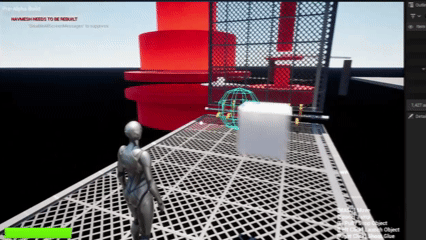 Physics-driven objects such as hinged boards, trap doors, and rotating components. These props were built using physics simulation and Blueprints, allowing players to combine powers creatively rather than relying on a single solution.