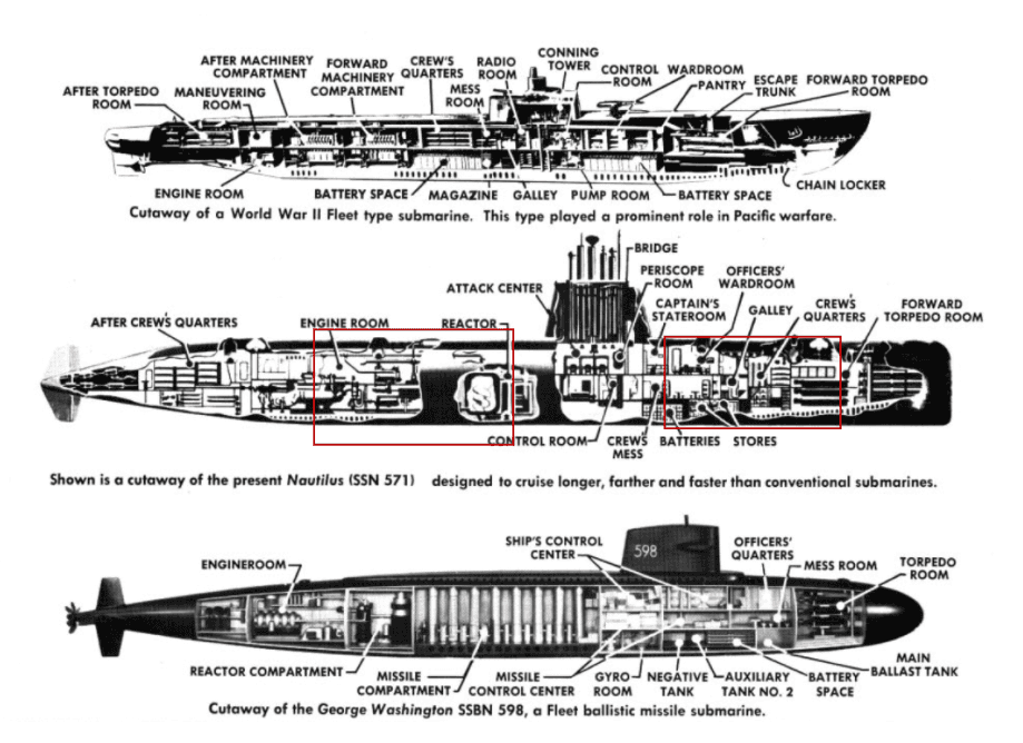 Real-world submarine layouts and compartment functions