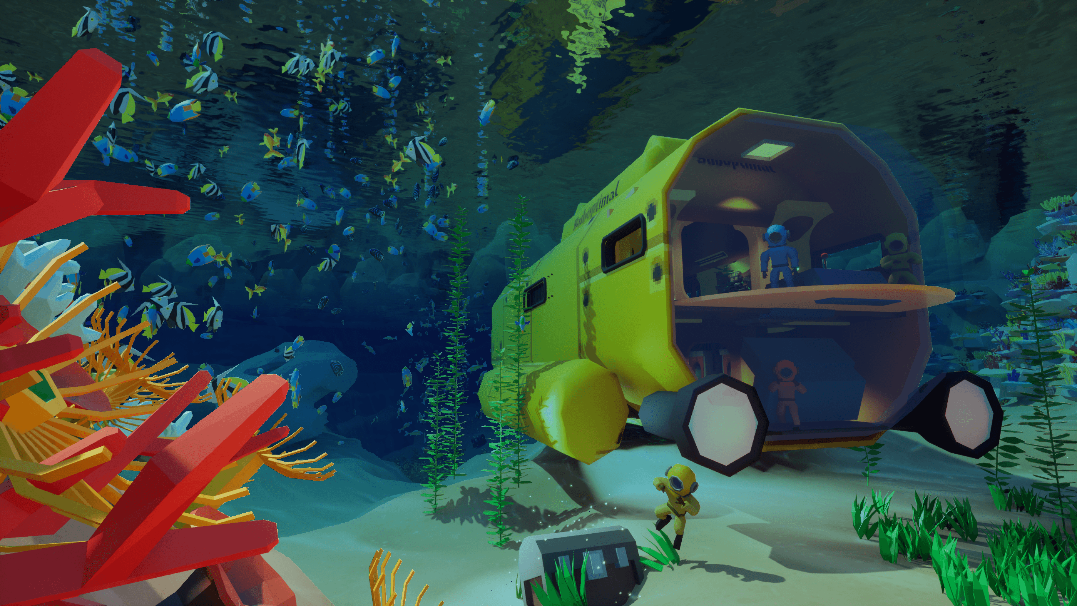 Real submarines—and most references from other games—are dark, industrial, and heavy, which made it difficult to visualize a “happy, friendly” submarine.