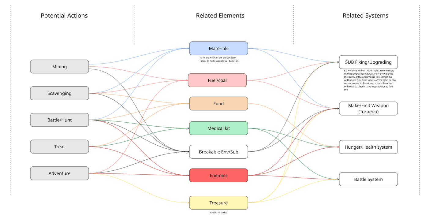 To address this, I started by gathering submarine references and mapping out their structure using color-coded diagrams.